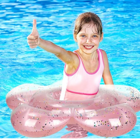 Inflatable Holographic Glitter Swim Ring - Flower Design