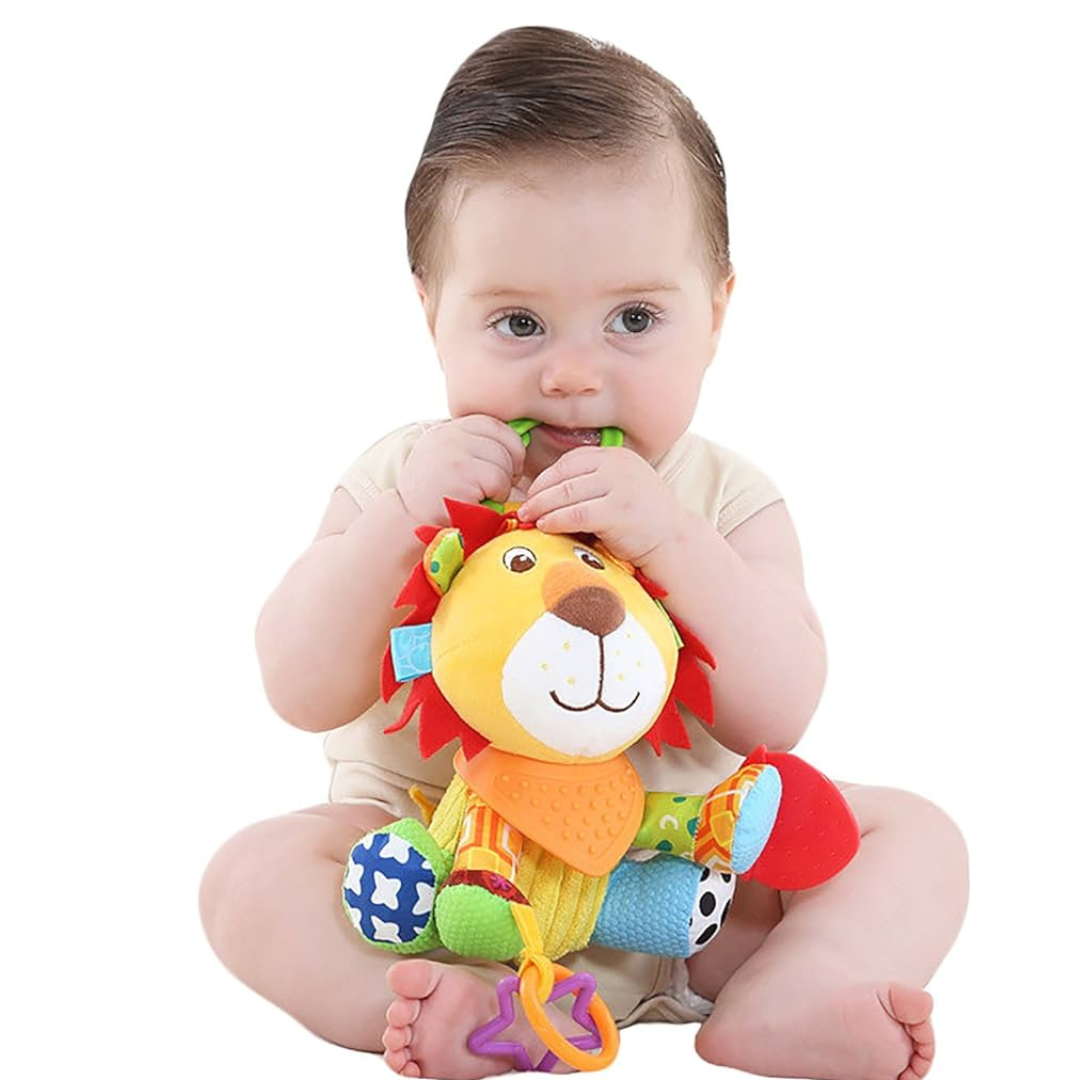 - Encourages sight, touch and hearing when they interact with the toy.