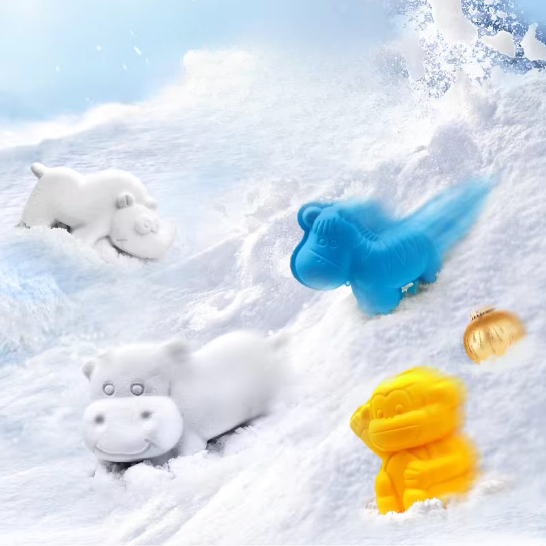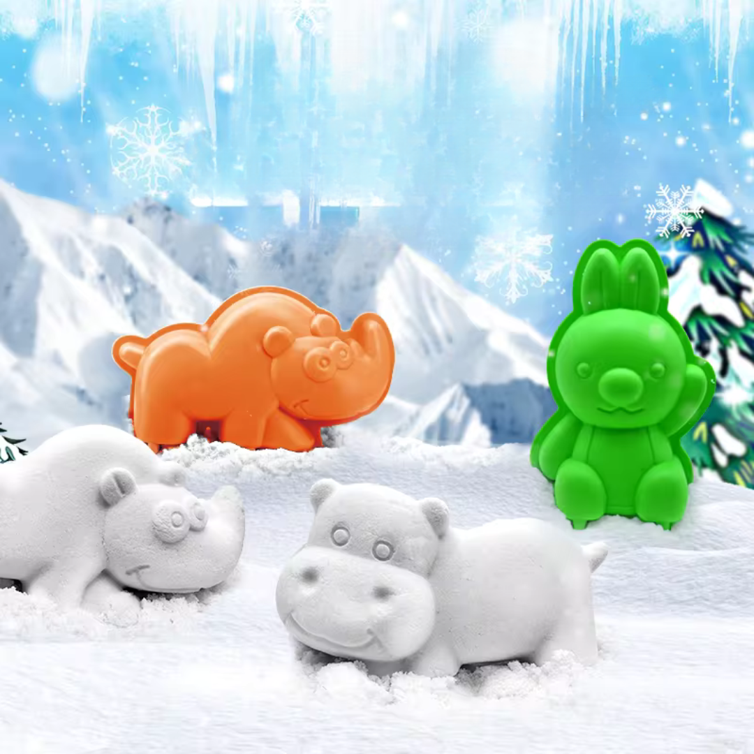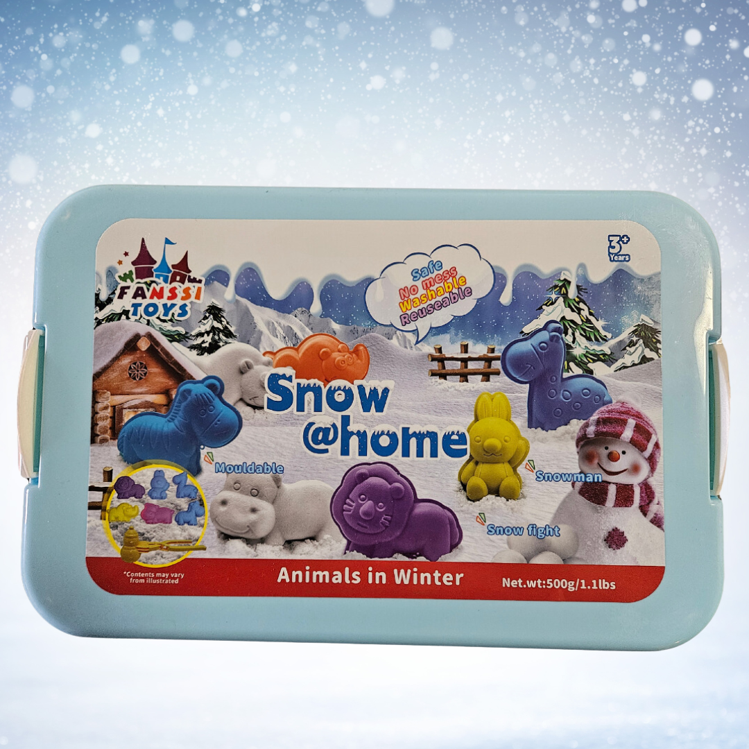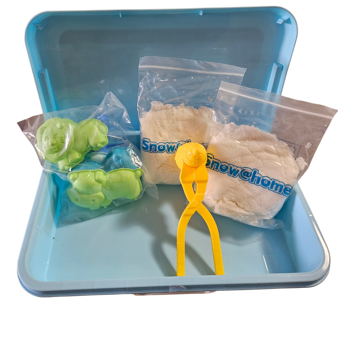 Each set comes in its own carry case which is used as a snow field, 6 animal molds, 2 bags of snow & a snowman mold.