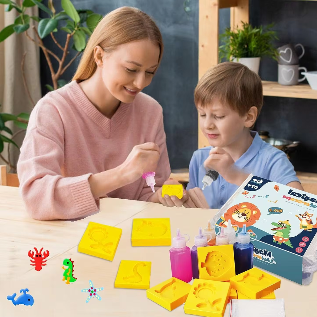 This magical kit transforms simple gel into vibrant, three-dimensional masterpieces by immersing in water.
