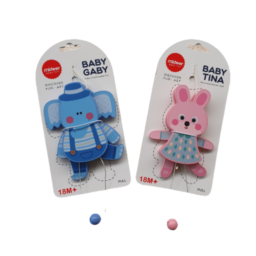 Product comes in 2 variations - a cute pink rabbit (Baby Tina) and an adorable blue elephant (Baby Gaby). The vivid illustrations makes the movement even more lively and attention-catching.