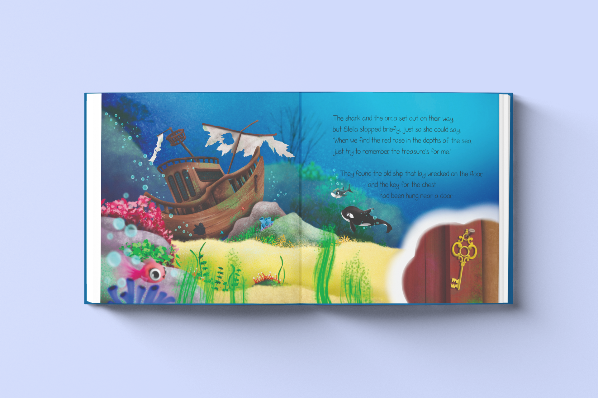 One day she enlists the help of an orca and an octopus to help her find the ‘Rose of the Sea’.