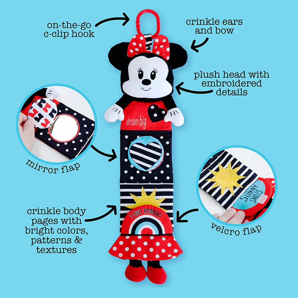 The delightful Minnie Mouse unfold body soft book includes multiple textures to promote baby's tactile and auditory development.